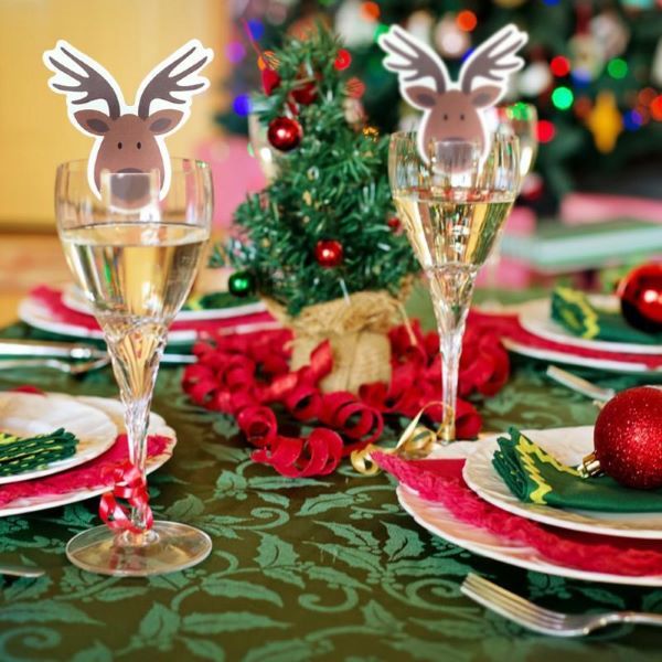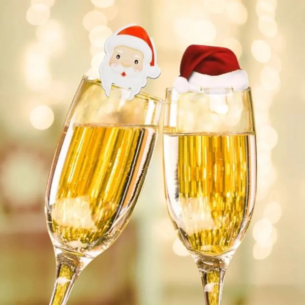 Rozwesel swoje świąteczne kieliszki tymi uroczymi dekoracjami w kształcie czapki Mikołaja i jelenia.