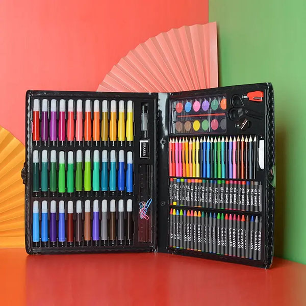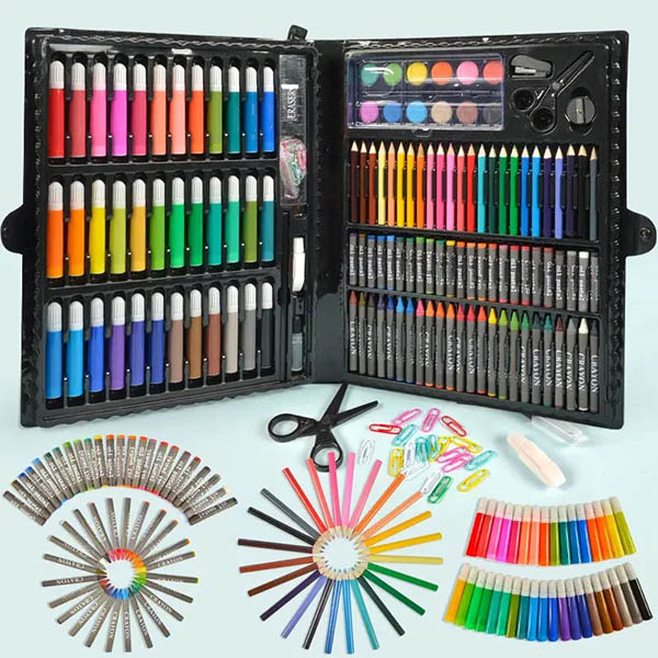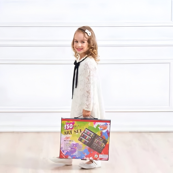 Czy to w szkole, czy w domu, ten kompletny zestaw zawiera 150 narzędzi artystycznych, w tym kredki, ołówki, akwarele i nożyczki. Idealny dla dzieci rozpoczynających swoją artystyczną podróż.