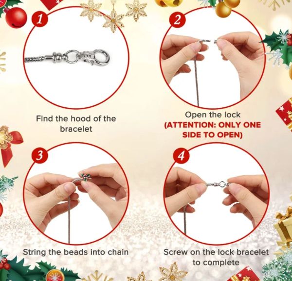 • Świąteczny kalendarz adwentowy zawierający 22 zawieszki i 2 bransoletki do stworzenia dwóch uroczych bransoletek.