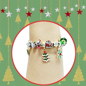 • Wszystkie urocze charmsy mają zachwycający motyw świąteczny, w tym Świętego Mikołaja, choinkę, czapkę Mikołaja, pudełko na prezenty, pończochę, płatek śniegu, wieniec, laskę cukrową i wiele innych.