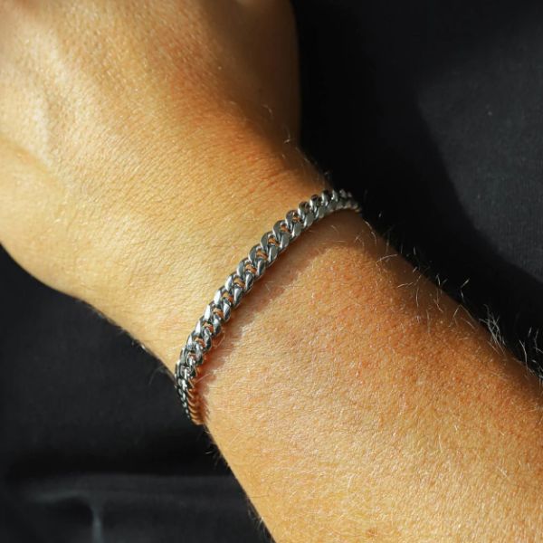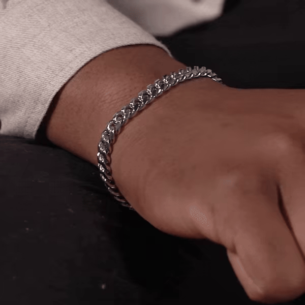 Stonowany styl glamour: Subtelny wisiorek, ozdobiony sześciennymi kryształami cyrkonii, dodaje odrobinę wyrafinowania, zachowując idealną równowagę między męską krawędzią a nutą elegancji. Kryształy łapią światło, oferując dyskretny, ale efektowny blask na nadgarstku.