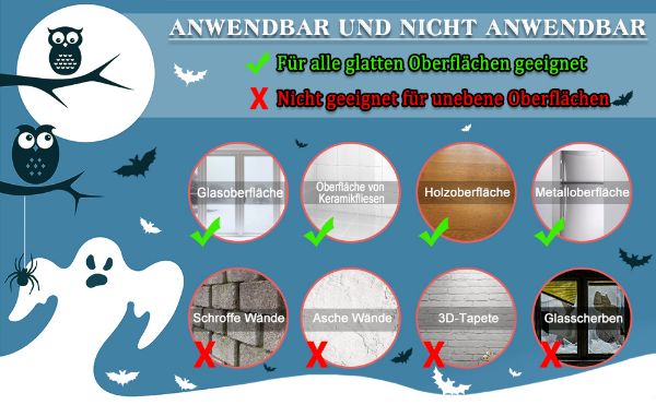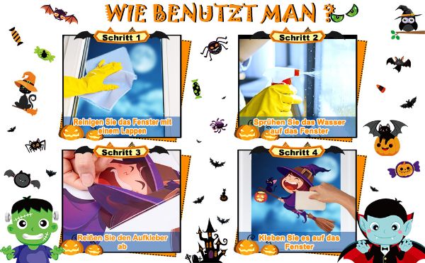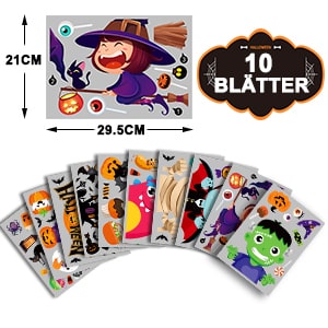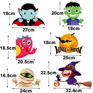 - Rozmiar: naklejki na okno na Halloween, składające się z 10 naklejek, każda o wymiarach 21 x 29,5 cm