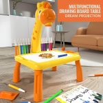 Kolorowy projektor w motywie żyrafy, zaprojektowany tak, aby przyciągał wzrok i sprawiał dzieciom radość, wspierając rozwój motoryczny i poznawczy.