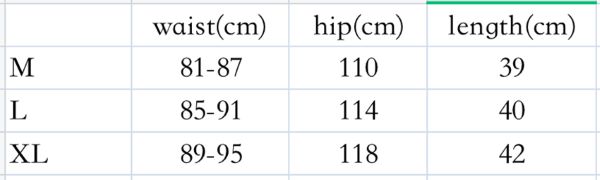Rozmiar: M – Talia 81-87 cm – Biodra 110 cm – Długość 39 cm