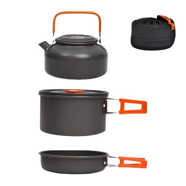 Zestaw zawiera wszystkie niezbędne elementy do gotowania na świeżym powietrzu: