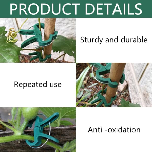 Wykonane z wysokiej jakości tworzywa sztucznego i metalu, klipsy te są wytrzymałe, nietoksyczne i zbudowane tak, aby wytrzymać trudne warunki pogodowe, jednocześnie chroniąc rośliny.