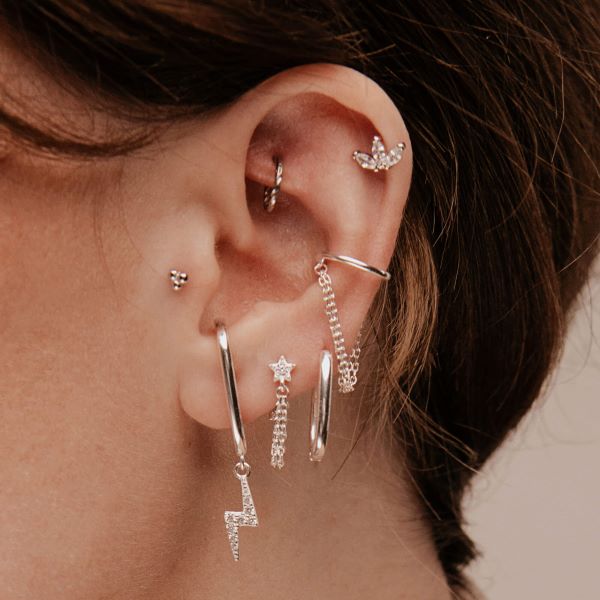 Estella to zabawny i atrakcyjny kolczyk, który zawsze pozostawia swój ślad. Mniejsza gwiazda z diamentem pośrodku jest połączona z dolną częścią za pomocą dwóch łańcuszków, które są pięknymi modnymi detalami. Kolczyk jest dostępny jako pojedynczy element i nadaje się do łączenia z innymi kolczykami.