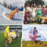 Ten nadmuchiwany kostium został zaprojektowany tak, aby pasował na osoby dorosłe o wzroście od 150 cm do 190 cm, więc prawie każdy może dołączyć do zabawy.