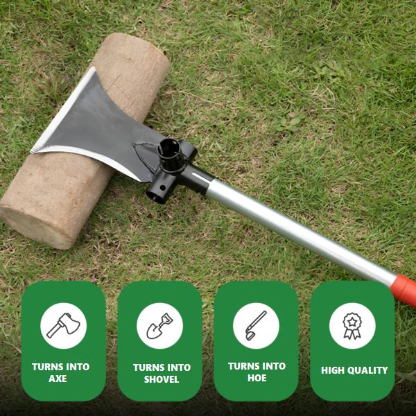 Przekształć VERSAX w siekierę, motykę, sierp lub łopatę z regulowaną pozycją uchwytu, idealną do każdego wyzwania w ogrodzie lub na świeżym powietrzu.