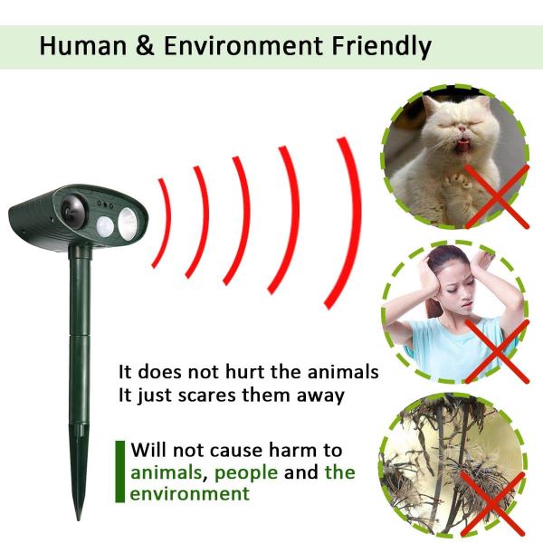 Od teraz nie będziesz już mieć problemów z niechcianymi zwierzętami w swoim ogrodzie, gospodarstwie lub sadzie. Ten odstraszacz zwierząt skutecznie odstrasza wszystkie niechciane zwierzęta z ogrodu. Odstrasza wszystkie rodzaje zwierząt, takie jak myszy, krety, koty, psy, ptaki, węże, nornice, jelenie…