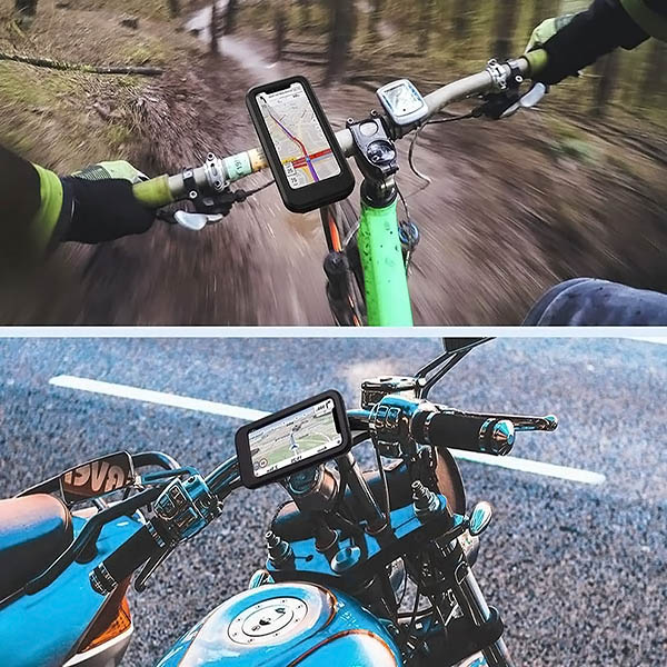 Jeździj bez obaw przez lekki deszcz lub rozpryski. Wodoodporna obudowa BRACKZPHONE chroni telefon przed kroplami wody, zachlapaniami i kurzem, zapewniając bezpieczeństwo podczas nieprzewidywalnych warunków pogodowych. (Uwaga: nie jest przeznaczony do ulewnego deszczu lub pełnego zanurzenia)