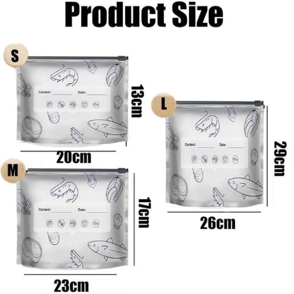 Idealne do przechowywania świeżych produktów, owoców morza, przekąsek, produktów sypkich lub artykułów nieżywnościowych, takich jak kosmetyki, drobne narzędzia i materiały do rękodzieła.