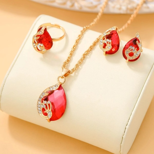 Odkryj idealne połączenie elegancji i wyrafinowania dzięki zestawowi składającemu się z zegarka, bransoletki, kolczyków, pierścionka i naszyjnika w uroczym czerwonym kolorze. Ten piękny komplet stworzony jest z myślą o kobietach, które chcą się wyróżniać i błyszczeć w każdej chwili.