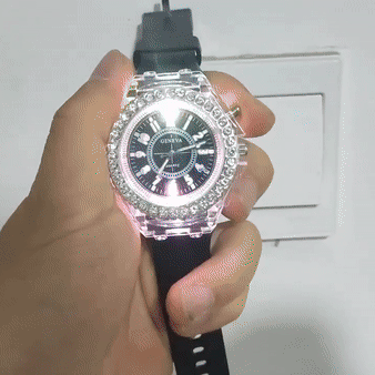 Napędzany mechanizmem kwarcowym i elektronicznym napędem, zegarek ten gwarantuje precyzyjne odmierzanie czasu, jednocześnie wykorzystując innowacyjną technologię LED do oświetlania drogi w słabo oświetlonym otoczeniu. Świeci i zmienia kolory, dodając czarującego akcentu do Twojego wyglądu.